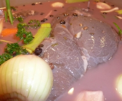 Hervorragendes Rezept 👍🏻 ich nutze es auch für eine Frischlingskeule und verfeinere mit Pfefferkörner+Wacholderbeeren je 1 TL und 3 Pigmentkörner + 1 Zimtstange 😉