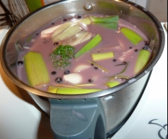 Habe das komplett kleingeschnittene Gemüse aus dem Sud in den Mixtopf und im Varoma aufgeteilt (Zusätzlich noch zwei Kartoffeln dazu gelegt). Letztlich die Garflüssigkeit und das Gemüse aus dem Varoma eine Minute auf 10 püriert; Sahne war eh der Kartoffeln überflüssig. Weltklasse die Soße! Danke für das Einstellen!