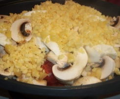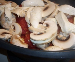Dann die Champignon in Scheiben auf die Tomaten geben .