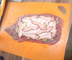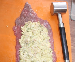 Da wir so große Rouladen hatten, mussten wir die Füllung nochmal die halbe Menge machen.