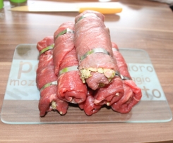 - Rouladen bei Bedarf noch klopfen und mit Salz und Pfeffer würzen.