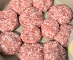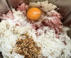 Ich hab sie mit Hähnchenhack gemacht und die Karotten nicht geraspelt, sondern mit der Zwiebel zerkleinert.