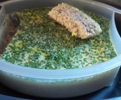 6. Nach Ende der Dämpfzeit den Eierguss auf die Pastete gießen und weitere 10 Min./ Varoma/ Stufe 2 dämpfen.