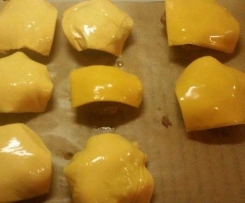 Jetzt in einer Pfanne mit Öl die Patties braten. Auf ein mit Backpapier ausgelegtem Backblech die fertigen Patties mit Scheiblettenkäse belegen und in den vorgeheizten Backofen bei 200 Grad so backen, bis der Käse ein bisschen weich ist.