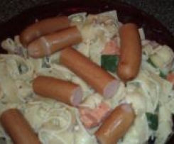 "Sanftrührstufe" . Wenn die Zeit um ist, zuerst das Gemüse in das Nudelabtropfsieb geben und anschließend die Nudeln samt Brühe darüber gießen. Dann bekommt das Gemüse noch etwas von dem Brühegeschmack. Nun alles in eine Schüssel füllen und den Frischkäse unterrühren. Fertig ist das leckere Essen. Da ich gerne Fleisch esse, habe ich einfach noch zwei Würstchen in Stücke geschnitten und dazu gelegt. So hatte ich ein leckeres Mittagsessen bei der Arbeit. Und nächsten Tag war auch noch etwas übrig als Gemüse-/Nudelbeilage zu Schnitzeln. Viel Spaß und guten Appetit.