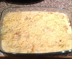 Ich habe auch die Sahne durch Milch ersetzt. Man sollte vielleicht erwähnen, dass man noch nicht gekochte Nudeln in die Auflaufform gibt.