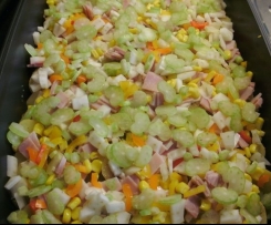 - Zutaten, fein geschnitten oder gewürfel nach und nach einschichten
