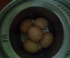 Habe wohl die Eier extra gekocht. Erstmal weil ich für 4 Personen mehr benötigt habe und die Eier vom Markt sind immer so gigantisch das ich nur zwei ins Garkörbchen bekommen würde.