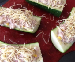 "Mixtopf geschlossen" und 10 Sek/St 4.Die Soße auf ein Blech geben, und das Wasser das in der Zucchini entstanden ist abgießen. Die Füllung in die Zucchini geben. Der Saft der in der Creme entstanden ist, kann gerne in die Soße mit gegeben werden. Die Zucchini auf das Blech mit der Tomatensoße setzen und mit Käse bestreuen.