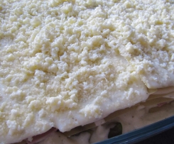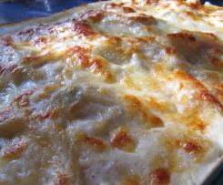 Ich habe die Lasagne nur mit 12 Platten und Räucherlachs zubereitet. Den Mozarella durch geriebene Emmentaler ersetzt, weil der Weg musste. Sehr lecker!