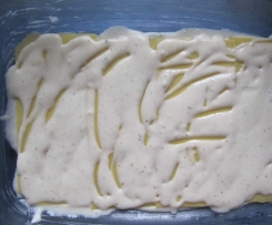 Ein rechteckige Auflaufform (meine ist 34 x 23 cm groß) einfetten.