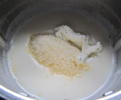 Die Flüssigkeit 6 Min. / 100 °C / St. 3 aufkochen. Frischkäse und 50 g des anfangs geriebenen Parmesans hinzufügen.