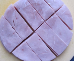 In der Zwischenzeit den Kochschinken in große Stücke schneiden.