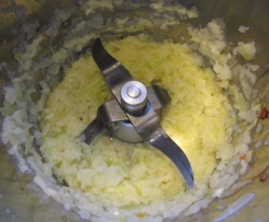 . - Die Zwiebel in den Mixtopf geben und 6 Sek./Stufe 5 zerkleinern. Mit dem Spatel nach unten schieben, die Butter hinzufügen und 2 Min./Varoma/Stufe 2 dünsten.