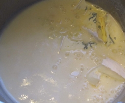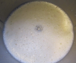 - Mehl in den Mixtopf wiegen. Die Waage auf 0 stellen und die aufgefangene Garflüssigkeit hinzufügen (bei mir waren es noch 270 g). Mit der Milch bis auf 500 g auffüllen und 5 Sek./Stufe 4 verrühren.