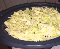 Den Weißkohl putzen , und in grobe Stücke schneiden .