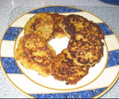 Habe die halbe Portion gemacht und Löffelweise in die Pfanne getan...sind fast 20 kleine (Durchmesser ca 6cm) feine Puffer geworden