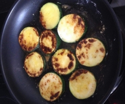 2) in dieser Zeit Zuccinis in 1 cm dicke Scheiben schneiden, im Mehl umwälzen und in einer heißen Pfanne (mit Öl) von beiden Seiten gold anbraten.