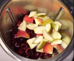 - Obst entsteinen, säubern und in Stücken in den Thermomix geben.