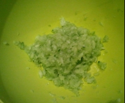 "Mixtopf geschlossen" geben und ca. 3 Sek./Stufe 5/ zerkleinern. Gurken in eine Schüssel umfüllen und mit Salz bestreuen (Wasser sollte austreten).