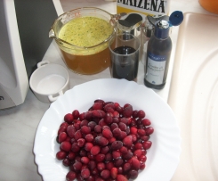 "Sanftrührstufe" :2--Dann die Cranberries , Salz ,Pfeffer und Speisestärke zugeben und solange kochen ,bis die Beeren platzen ca . 8-10 Min . 100 Grad ./ Stufe 2 ./ und abschmecken :