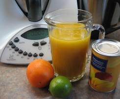 "Mixtopf geschlossen" geben und 25 sek/ St 5 pürieren.Ausgepressten Limetten- und Orangensaft und 75 ml flüssigen Honig in den