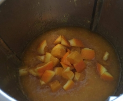 3. 3. 100g Fein gewürfelte Orangenstückchen dazugeben und 3 Min./105°C/Linkslauf"Linkslauf" 2,5