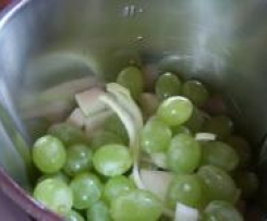 Die Zwieblen schälen ,vierteln und die Weintrauben in den Mixtopf