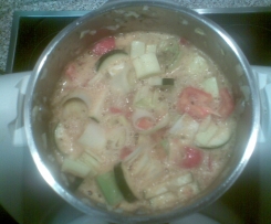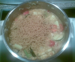 Schnell zubereitet und vorhandenes Gemüse genommen.