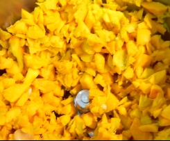- 1 Hokkaido-Kürbis, entkernt, ca. 800 - 850 g, in groben Stücken