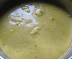 Das Lorbeerblatt entnehmen und die Suppe 20 Sek. / St. 10 pürieren. Die Sahne und die Gewürze hinzufügen und 10 Sek. / St. 4 verrühren. Evt. noch mit etwas Brühpaste abschmecken. Dabei aber bitte bedenken, dass der gewürzte Fisch noch hinzukommt!