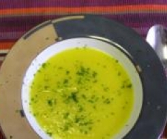 "Linkslauf" köcheln lassen.0,5 Liter Sahne zum kochen dazugeben, Salz, Pfeffer und Petersilie dazu und auf Stufe 8 pürieren.