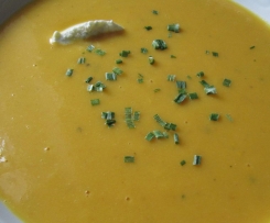 Das Rezept ist einem regionalen Kochbuch der Landfrauen. Es gibt hier zwar schon Rezepte für Möhren-Orangen-Suppen, aber dieses ist wieder etwas anders.