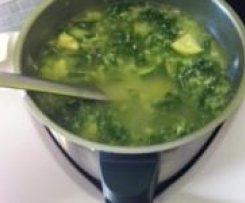 "Mixtopf geschlossen" einwiegen und bei 100° / Stufe 1/ 15 Min. zum kochen bringen. Den TK Spinat ebenfalls einfüllen. Er kann ruhig gefroren sein. Derweil die Zucchini waschen, längs halbieren und vierteln. in Scheibchen schneiden. Wenn die Suppe kocht, den Spinat mit dem Spatel immer wieder mal verrühren, sodass sich der Spinat löst. Die Zucchini und die Lauchzwiebeln zufügen und alles ca. 4-5 minuten köcheln lassen.Nun die bereitgestellte Eiermasse langsam durch die Deckelöffnung zufügen. Auf 90° stellen und weitere 5 Minuten köcheln lassen. Die Masse flockt nun aus und bildet kleine Klümpchen.