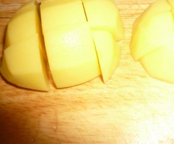 2 mittel große Kartoffeln in kleine Mundgerechte Stücke schneiden und ins Garkörbchen geben.Auf wunsch können Sie auch statt 2 Kartoffeln eine Karotte und eine Kartoffel nehmen.
