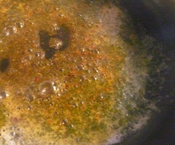 In der Pfanne die Butter schmelzen lassen und dann die Minze und das Chillipulver hinzugeben...mhhh was für ein Geruch entsteht einfach lecker...