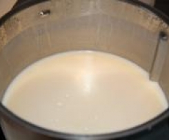 "Mixtopf geschlossen" einfüllen. 8 Minuten/Stufe 2/90° köcheln. Schmelzkäse, Schmand , Sahne und die Eigelbe zugeben und 3 Minuten/Stufe 2/90° zu einer cremigen, weißen Suppe köcheln. Eventuell mit Salz und weißem Pfeffer etwas nachwürzen.