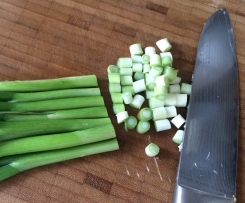 1 Bund Frühlingszwiebeln, waschen, in Ringe schneiden und zur Seite stellen.