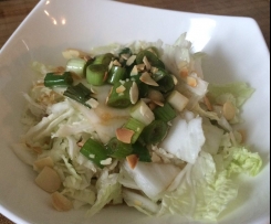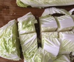 In eine Salatschüssel umfüllen und diesen Schritt mit der anderen Chinakohlhälften wiederholen.
