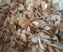 Mandelstifte grob hacken anrösten, zur Seite stellen und abkühlen lassen. Ich hatte nur Mandeln geblättert, geht auch, aber besser sind Stifte.