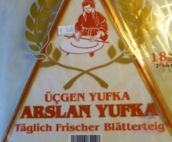 • 18 Stücke Yufka -Teig, große Dreiecke; vom Türkischen Supermarkt (siehe Foto)