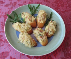 Die abgeschmeckte Sauerkrautmasse (ohne Flüssigkeit!!) auf die Baguettescheiben verteilen und im vorgeheizten Backofen bei 200 - 220°C etwa 6 bis 8 Minuten backen. Die gebackenen Bruschettas mit Petersilie bestreuen und servieren.