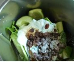 Ich habe anstatt Joghurt einfach saure Sahne genommen und anstatt Rosinen 2 Datteln...schmeckt total toll!!