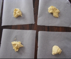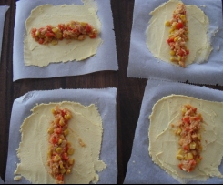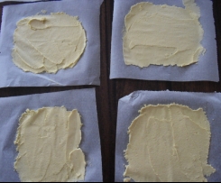 Auf die Backpapierrechtecke nun den Teig gleichmässig verteilen