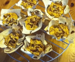 Der Boden ist etwas dünn, dadurch ist es nicht ganz leicht sie als Fingerfood zu essen, aber daran werden wir arbeiten