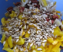 Da ich keine Sonnenblumenkerne vorrätig hatte musste es auch ohne gehen. Es hat trotzdem sehr lecker geschmeckt. Allerdings benötigte ich 2 TL Honig zusätzlich, was aber an der neuen Essigsorte liegt, die ich von E...a gekauft habe.