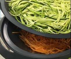- 500 g Möhren, mit einem Julienne-Schäler in lange Streifen geschnitten