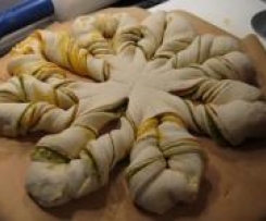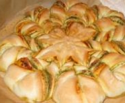 Ich war von der Hefeblume //rezeptwelt.de/rezepte/hefeblume-gelingsicherer-hefeteig-mit-nu%C3%9Ff%C3%BCllung-sch%C3%B6ner-form/241754 so begeistert, dass ich gleich diese herzhafte Variante gemacht habe. Wahrscheinlich gehen auch andere herzhafte Füllung, Pesto im Glas hatte ich am Schnellsten zur Hand.