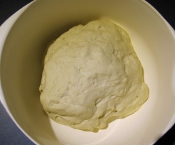 Den Teig abgedeckt ca. 30 Minuten an einem warmen Ort gehen lassen.