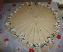 trotz viel Arbeit schmeckten sie nicht so, wie ich mir wohl davon versprochen hatte. Trotz erhöhter Menge an Füllung, ich habe 300 Gramm Kräuter-Feta, noch 5 getr. Tomaten in Öl und mehr Petersilie genommen, hat es nicht ausgereicht und ich fand die Teilchen teilweise sehr trocken.